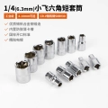 夜蝌内1/4小飞六角套筒扳手6.3mm套头8/10/13/14mm小套筒工具